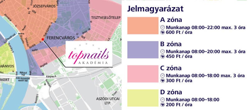 „A” várakozási övezetbe értendő: Dandár utca mindkét oldala – Thaly Kálmán utca mindkét oldala! Mester utca mindkét oldala (páros 2-54 páratlan1-35) a Thaly Kálmán/Dandár utcáig.